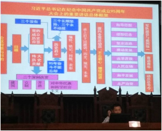 10月26日下午,法律学院学生党建中心联合法律学院易班工作站组织开展了以“端正党风,易心为国—--学习贯彻习近平总书记‘七一’讲话精神”为主题的党课教育活动。本期党课教育活动创新推出现场党课与网络党课同步进行模式。现场活动由法律学院党总支书记文立月老师主持,校组织部胡爱军老师、法律学院党总支副书记闯晓燕老师、法律学院学生党支部书记李攀老师及全体辅导员参加会议。