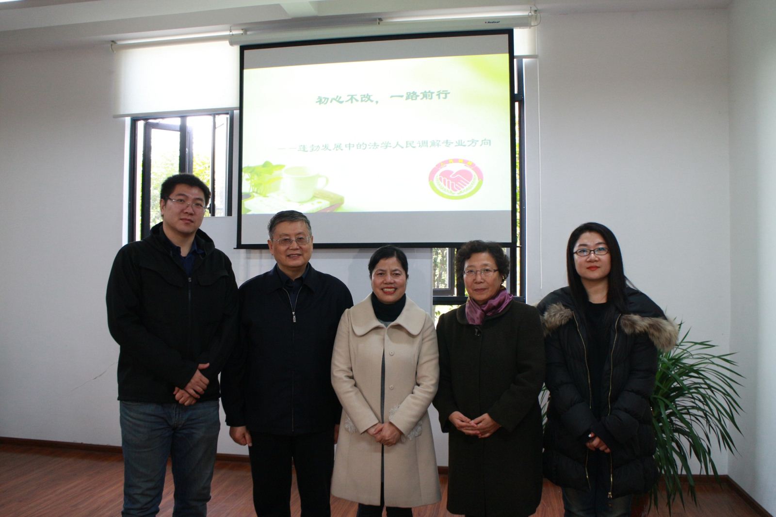2016年12月12日,天津市医调委副主任陶菊芳、天津市医调委指导部主任宋迎、天津市司法局基层处干部张暠、天津市医调委调解员刘紫薇一行四人到法律学院就法学人民调解专业方向进行调研考察。法律学院院长侯怀霞教授、党总支书记文立月同志接待了天津来宾。
