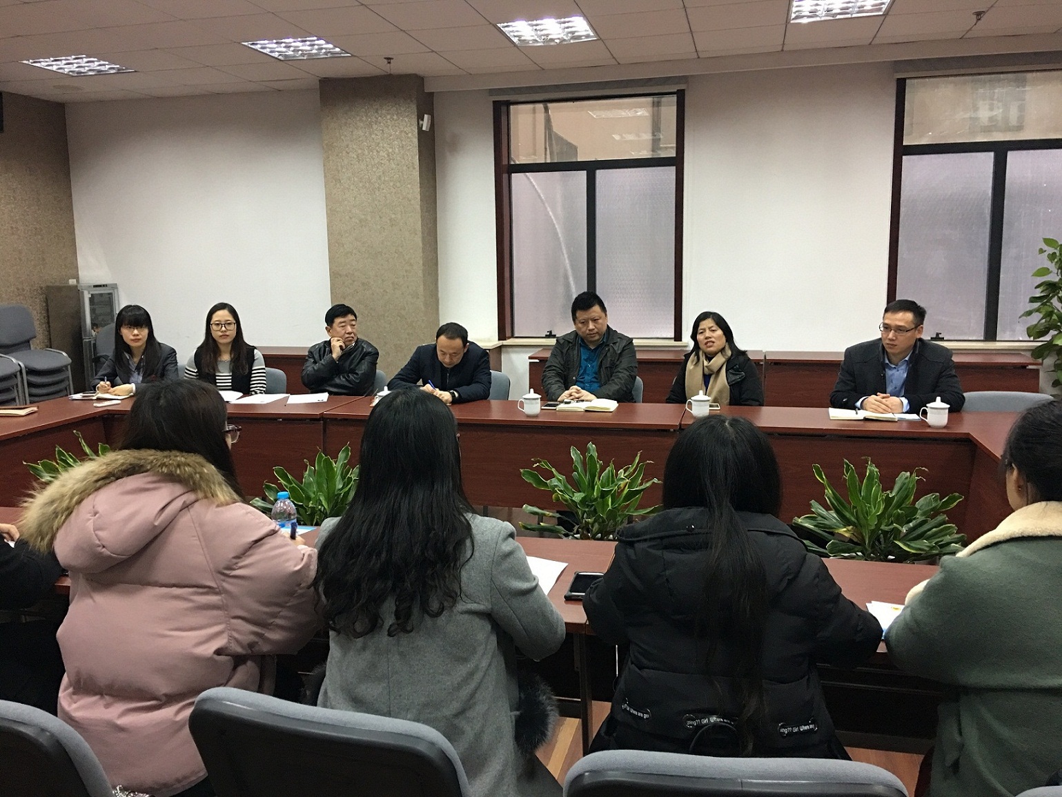 首先,我院2012级毕业生、现专调中心工作人员王晨蕾从历史发展、部门设置、工作内容等几个方面介绍了专调中心的基本情况,同时对我院实习生表示欢迎。会上,沈东主任就实习事项与法律学院方面进行沟通,表达了与我院进行全方位合作的愿望,对前来实习的学生提出了要求,并希望学生能够在实习岗位上发挥自己的专长,认真学习调解知识。随后,侯怀霞院长介绍了我院的人民调解特色学科及法律学院实习学生情况,对六位实习生寄予厚望,希望他们在工作中能够遵守规定、好好表现、有所收获。最后,基层处张斌处长就调解干部培训表达了自己的看法,并对实习生提出了“学有所思、学有所明、学有所进”三个祝愿。