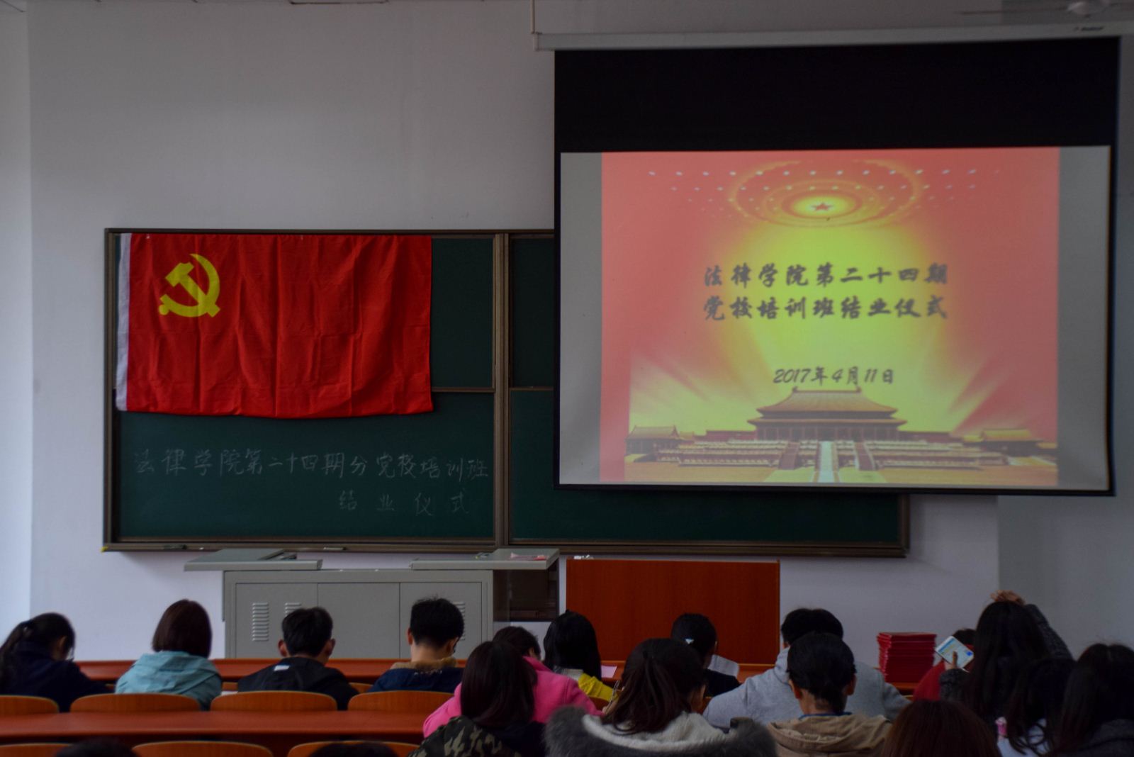 2017年4月11日下午1点,新利18官方客服法律学院第二十四期分党校培训班结业仪式在法学楼B4-105举行。法律学院学生党建中心督导员李攀出席此次结业,第二十四期入党积极分子参加此次结业,结业由法律学院学生党建中心办公室负责人杨红主持。