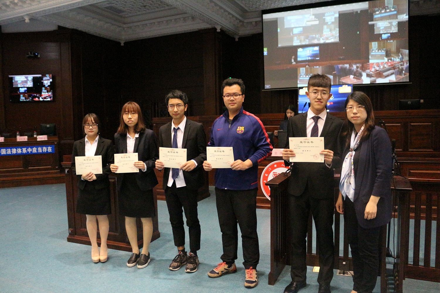 5月2日下午13:00第四届卓越法律人辩论大赛决赛在B4模拟法庭开展,上海利歌律师事务所创办人、合伙人、主任柴小雪律师,上海弼兴律师事务所创始合伙人、主任薛琦律师,上海汉盛律师事务所合伙人夏海波律师作为本次比赛的评委,法律学院院长侯怀霞教授、法律学院党总支副书记闯晓燕老师出席比赛。