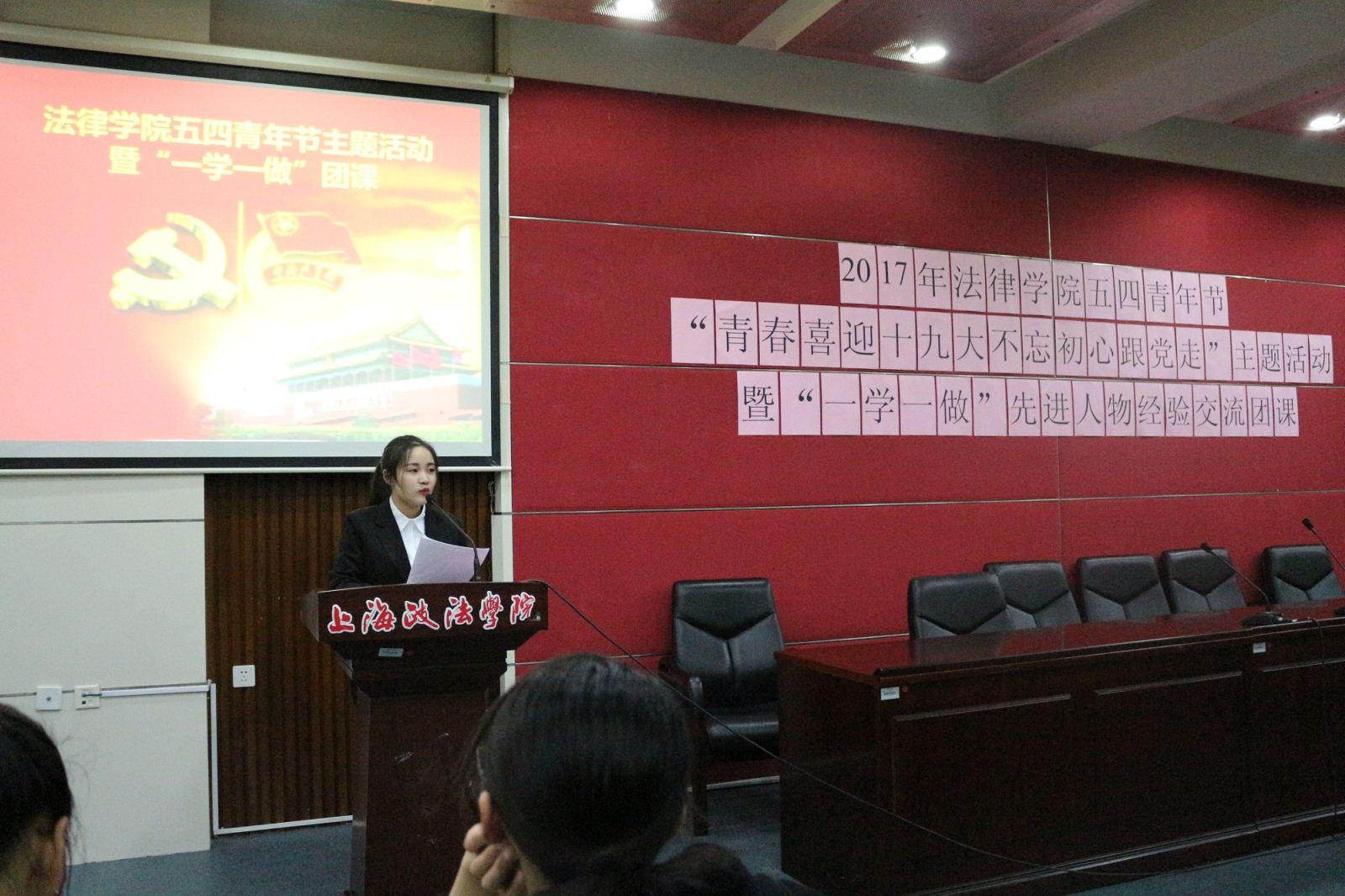 2017年5月4日中午12点,在法律学院分团委的组织下,法律学院“青春喜迎十九大 不忘初心跟党走”主题活动暨“一学一做”先进人物经验交流团课在庸夫楼101顺利举行。法律学院分团委副书记、2016-2017学年新利18官方客服五四青年标兵——黄诗雨,团学骨干朱天韵以及大一各团支部代表参与了本次主题活动。