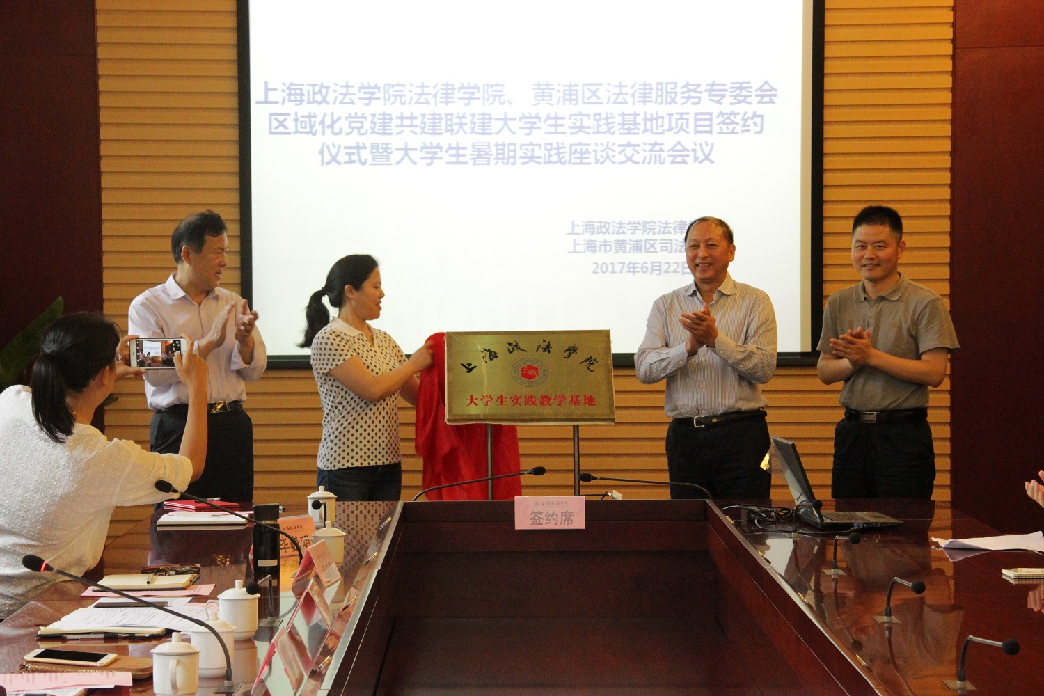 2017年6月22日上午,法律学院与黄浦区司法局区域化党建共建联建大学生实践基地项目签约仪式暨大学生暑期实践座谈交流会在学校综合研究中心101会议室隆重召开。学校副校长关保英教授、黄浦区司法局党委书记、法律服务专委会秘书长张伟航出席会议、法律学院院长侯怀霞、党总支书记文立月、副书记闯晓燕、法理学教研室教师毕巍明以及黄浦区司法局、区委组织部相关部门领导,暑期实习大学生参加会议。会议由文立月主持。