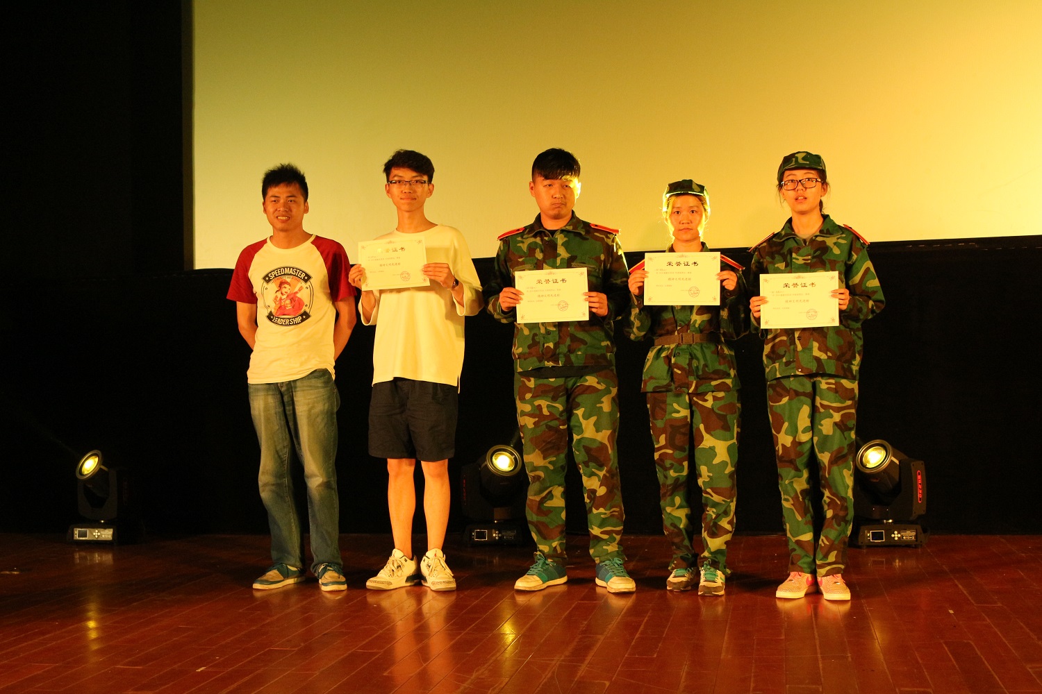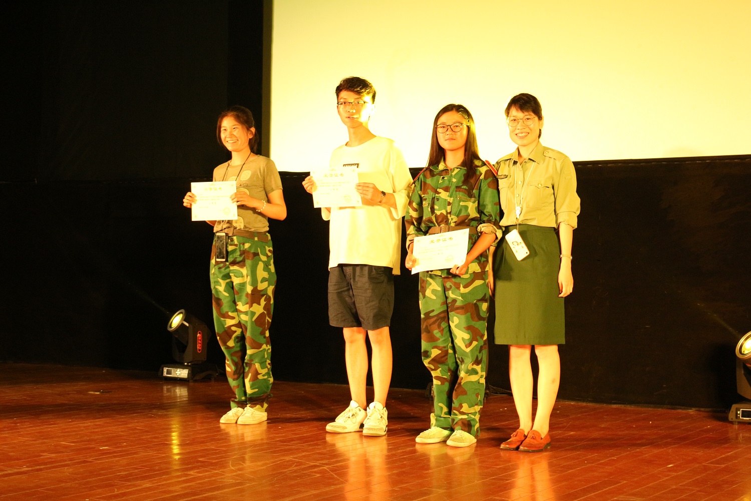 当同学们还在回味着上一首歌曲的时候,我们的军魂团所带来的《热血军魂》武术表演演绎了军人们的铁血刚强,又再一次的点燃了全场的气氛,让同学们看的欲罢不能。而在王振晔和唐言带来的唯美拉丁舞表演《安河桥》后,晚会迎来了颁奖环节、观看视频环节和游戏环节。悉数着自己班级或自己在军训期间所得到的荣誉,观看着军训一天天美好的回忆,有些同学眼角不禁湿润,勾着身旁同学的肩膀一起微笑着,也许,这才是军训的意义所在吧。在教官们和营长参与的游戏环节《奔跑吧!教官》中,微信墙更是被刷爆了,各排为自家教官加油助威的口号响彻了整个会场。