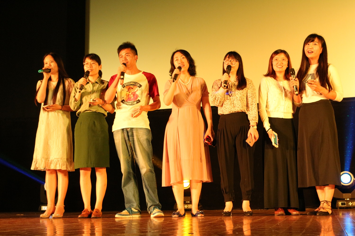 在短暂的抽奖环节后,团学的同学们筹办晚会之余还表演了《我真的很不错》舞蹈串烧,整齐而有富有青春活力的舞步也正是法律学院团学各部门充满着正能量和青春气息的象征。晚会有同学们的精彩表演,也少不了辅导员们的倾情付出,辅导员们深情演唱了一首《时间都去哪儿了》展现出了平日难以见到的“男神女神”风采。接着,王伟婷和赵晓晨带来的一首《告白气球》,在副歌部分走下舞台,与同学们的互动让现场的尖叫声连连不断,飞向空中的那些五彩斑斓的气球再一次点缀了整个晚会。