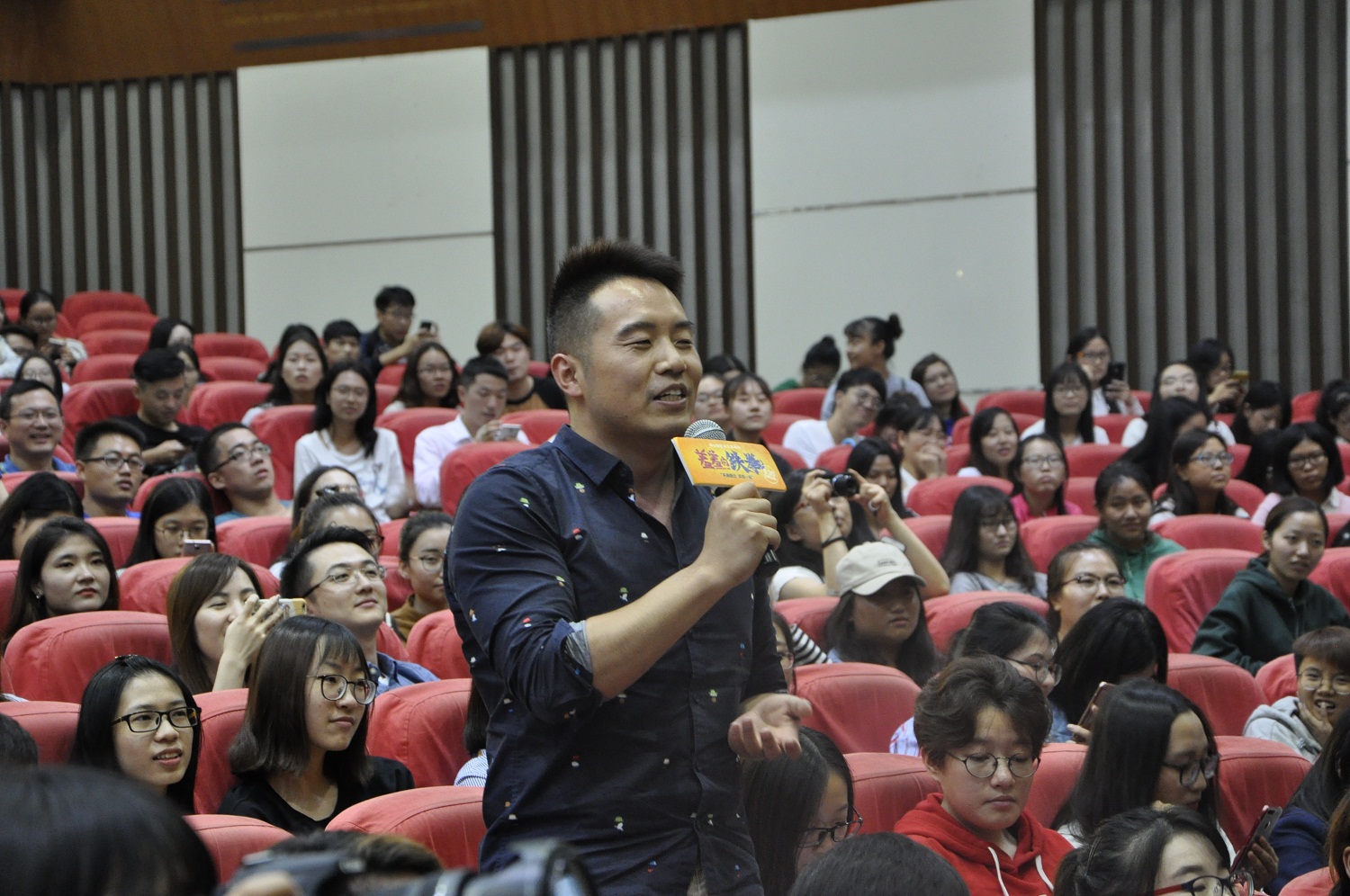 首先,到场师生们一同观看了影片《羞羞的铁拳》。随后,导演及编剧宋阳、张迟昱和演员艾伦、马丽与观众们进行互动交流。面对同学们的各种问题,在场的导演与演员们精彩的回答获得了雷鸣般的掌声。影片得到观众们的一致好评。点映会的最后,主创人员为在场观众送去礼物,并合影留念。