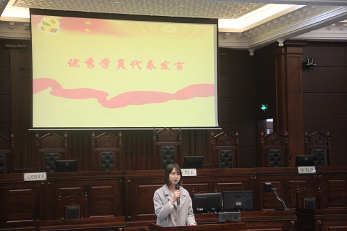 优秀学员代表龚钰欣和优秀党课小结学员代表徐丹黎上台发言,表示通过培训提高了自己的理论修养,在今后的学习和生活中会时刻以党员的标准严格要求自己,认真学习好专业知识,加强自身思想道德素质,为早日成为一名合格的共产党员而努力奋斗。
