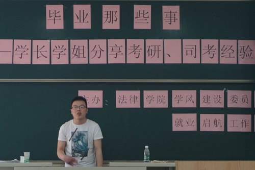 4月17日下午在主教202A,法律学院学风建设委员会与法律学习就业启航工作组共同举办的“毕业那些事”考研、司考经验交流会,本次经验交流会分别邀请到2012至2014级的学长和学姐。