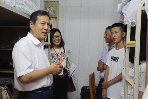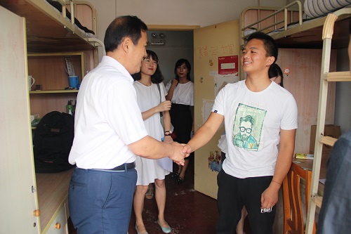 学院领导老师一行人来到男生宿舍7号楼和女生宿舍22、23号楼。文立月首先询问了新生的生活情况与住宿条件,在与同学们亲切交谈中希望同学间相处要相互照顾、相互适应,圆满完成大学四年的学习任务。随后,闯晓燕在与家长的谈话过程中强调大学更加注重同学们独立自主能力的培养,也同时欢迎家长随时与学校保持联系,掌握孩子的在校情况。最后,张露、李语熙、买雨佳与各自带班学生进行亲切的交流,询问生活中所遇到的问题并且交换了联系方式。