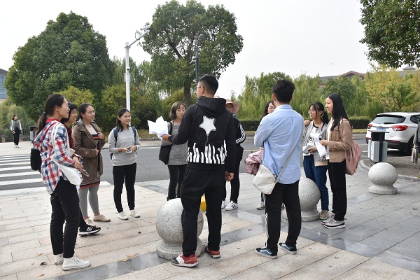 活动共设8个散落在上政地图上的风景点,有九曲桥野马浜、邑谷法碑和莲花书院等上政学子必去的打卡点。关于地点的线索有文字诸如选自莲花书院联的诗句,也有摄于上政一角的风景照。每个地点精心准备的小游戏如“正话反说”、“官兵捉贼”等让同学们乐在其中,而知识问答和写“灋”字则在增加趣味的同时,丰富了同学们的知识。活动伊始,同学们分成几组,根据拿到的线索寻找指向的地点,以小组合作的形式进行游戏,获得下一条线索并继续游戏。大家穿梭在校园各处,一起参与思考解题,彼此帮助通过关卡,其乐融融。活动的最后,完成全部任务总用时最少的前三名的小组获得法律学院易班倾情提供的小礼品。