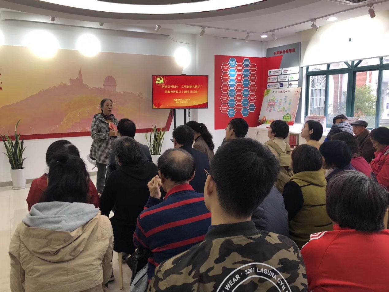 活动开始,佘山镇党建中心的工作人员对中心服务内容和工作职责进行了介绍并观看宣传视频。翠鑫苑居民区党支部书记陆琼就前阶段创全工作开展和下阶段计划进行介绍。