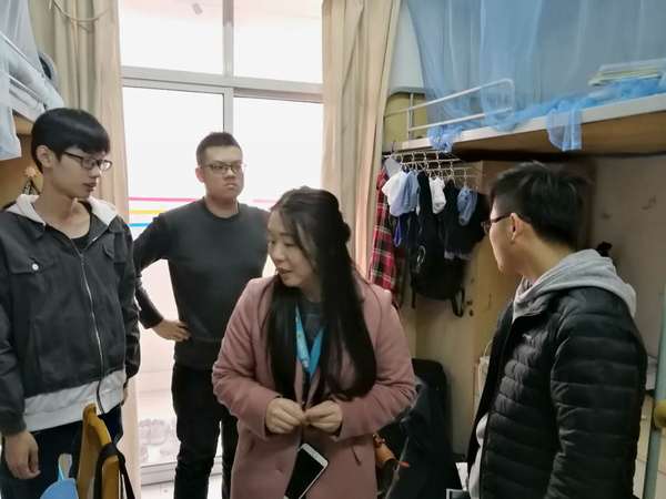 学工团队与与寝室的同学们进行亲切地沟通交流,详细询问大家学习、生活上所面临的问题,针对浴室改造、浴室热水供应等同学们共同关心的问题,学工团队深入地和同学们交换意见,也给出了积极的反馈建议,共同致力于为同学们提供一个良好舒适的学习生活环境。(刘泽迪 撰稿、摄影)