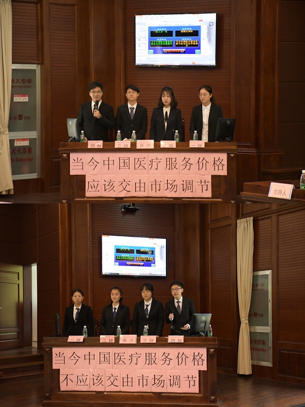 唇枪舌战,辩赛场硝烟;口若悬河,理是非曲直。双方辩手就“当今中国医疗服务价格应不应当交由市场调节”展开了激烈又精彩的辩论。他们在立论、质询及总结环节时而妙语连珠,时而掷地有声,直中对手要害。