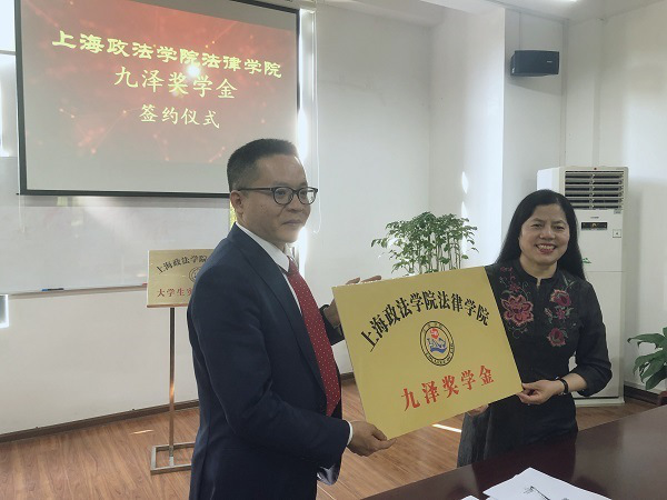 侯怀霞教授在致辞中介绍了法律学院总体发展概况,对九泽律师事务所设立九泽奖学金表示热烈的欢迎和由衷的感谢。她表示九泽奖学金的设立是九泽律师事务所关心法学教育事业、积极承担社会责任的体现,能够激励我们以更加饱满的热情投入到法学教育事业中,学院将制定好九泽奖学金实施细则,充分发挥其激励作用。