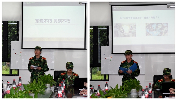 为献礼新中国成立70周年,激励和引导广大青少年更加紧密地团结在以习近平同志为核心的党中央周围,不忘初心、牢记使命,激发和培育同学的民族精神和军人意志。军训期间6月20日下午,法律学院特别策划“我的军魂,我的团”演讲比赛。担任本次比赛的评委有法律学院团委书记买雨佳、辅导员董敏维、军训导生邹柏林、伍登、惠星瑜。
