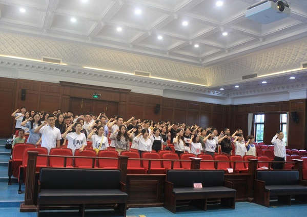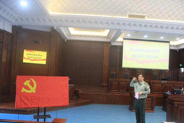 在徐海琨老师的带领下,全体毕业生党员重温入党誓词。