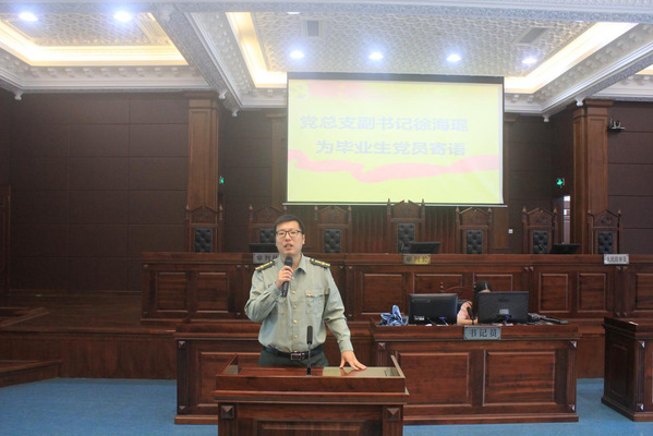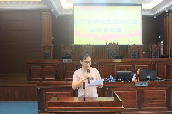芳菲未歇,夏木可人。为迎接“七一”党的生日,做好毕业生党员离校工作。6月28日上午,法律学院于B4模拟法庭开展“不忘初心跟党走,砥砺奋进新征程”—法律学院迎“七一”座谈会暨毕业生党员专题党课。法律学院党总支副书记徐海琨,2019届本科生、研究生毕业党员参加活动。