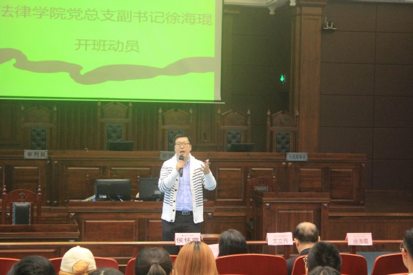 10月22日中午,法律学院分党校第二十九期入党积极分子培训班开班仪式在模拟法庭举行。法律学院党总支书记文立月,党总支副书记、院长侯怀霞,党总支副书记徐海琨、学生党支部书记出席了开班仪式。