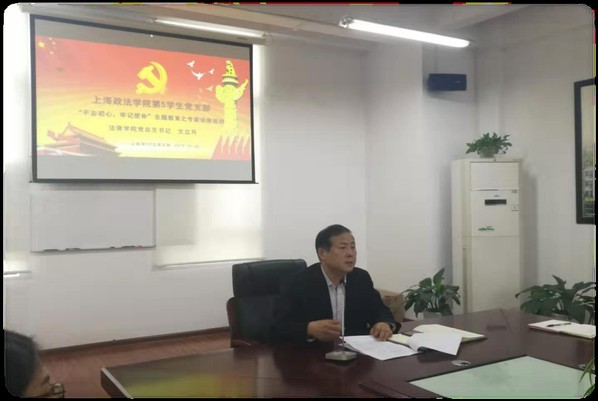 10月25日,法律学院党总支书记文立月在B2-110为上政第5学生党支部党员主讲了“不忘初心、牢记使命”主题教育专题党课。