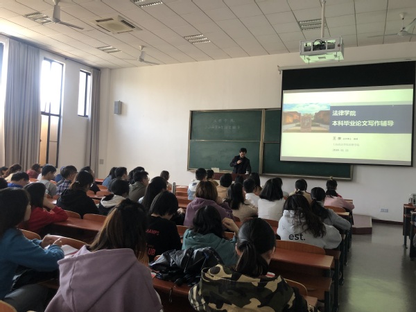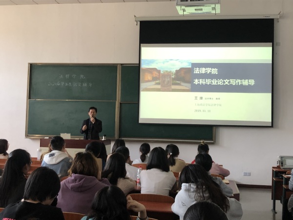 为做好毕业生工作,引导毕业生提早准备毕业论文,法律学院于11月11日下午举办2020届本科毕业生毕业论文辅导讲座。讲座在B2-204进行,主讲人为法律学院副院长王康教授。
