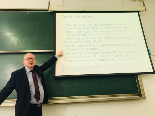 Hamish Stewart教授在讲座中将理论和实践相结合,分别运用典型的民事案例和刑事案例来阐释普通法的形成方式等相关理论,使得讲座内容生动有趣,他风趣幽默的讲座风格也引来老师和同学们的阵阵掌声。