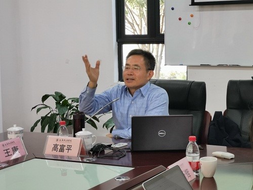 王康对高富平教授进行介绍。高富平系华东政法大学法学教授、博导及民商法学专业博士点负责人,曾任华东政法大学知识产权学院院长,现为华东政法大学财产法研究院院长、数据法律研究中心主任。他在物权法、房地产法、电子商务和信息网络法等领域有丰硕研究成果,出版了《物权法原论》《信息财产》等著作。