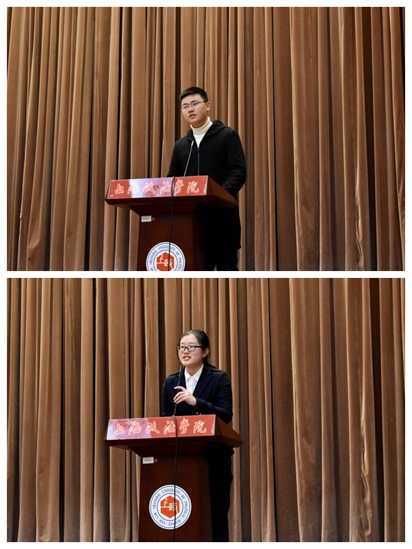在第十六届挑战杯上海市大学生课外学术科技作品竞赛的表彰仪式上,文立月为特等奖获得者颁奖,辅导员买雨佳为一等奖、三等奖获得者颁奖。