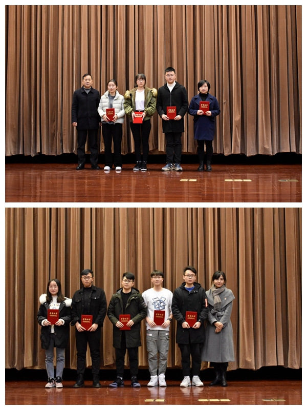 会上,甘中飏、赵宇两位同学作为优秀学生代表上台发言,表达了对校方、奖学金设立方以及老师们的感激之情,同时激励同学们努力提高专业素养,积极参与学科类比赛勇于挑战自我。
