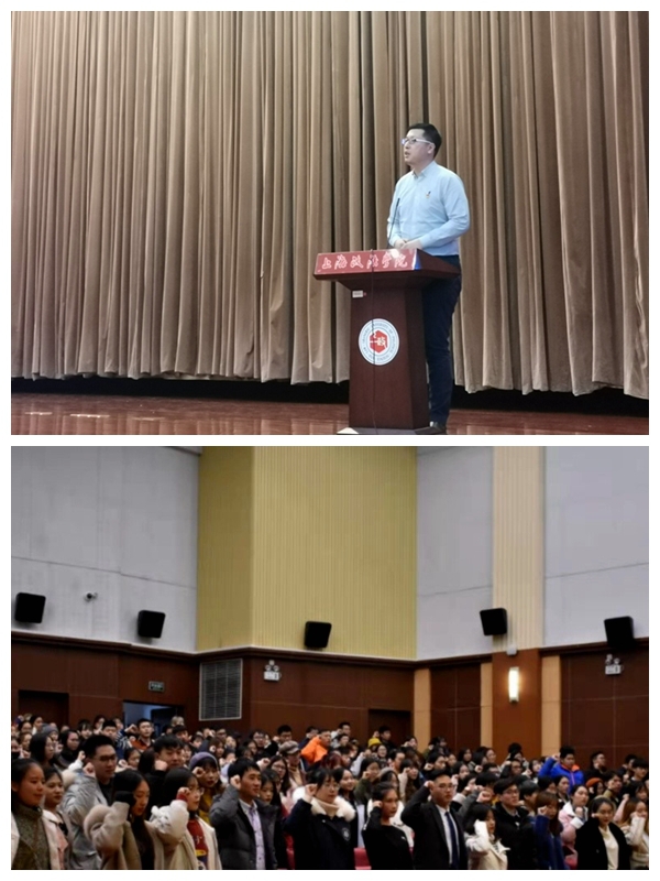 在诚信考试动员大会环节,徐海琨解读考试规则并带领全体学生就诚信考试宣誓。