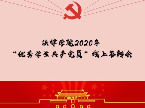 近日,法律学院“优秀学生共产党员”答辩会在线上举行。法律学院党总支书记文立月、党总支副书记徐海琨、各学生党支部书记作为评审参加答辩活动,前期经各学生党支部民主推荐的“优秀学生共产党员”候选人入围了线上答辩。