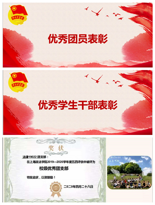 会上对校级优秀团支部、优秀团员和优秀学生干部进行了表彰。法律19022团支部团支书康逸辰作为校级优秀团支部代表进行发言,他认为做好团支部工作,应当充分考虑团支部的凝聚力和活力,全心全意为同学服务。周清怡作为校级优秀团员代表进行发言,作为新时代的青年团员要在共青团的队伍里不断锻炼、磨练自己,积极投入到学校及学院的各项活动和建设中,积极投身于公益和志愿活动。陈思旭作为校级优秀学生干部代表进行发言,身为法律学院学生会主席,她认为学生干部要多读书、多实践,要有正确的世界观和远大的理想,要懂得“服务学生”是学生干部的责任。