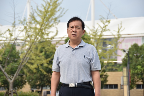 军训期间,法律学院院长侯怀霞、党总支书记文立月、党总支副书记陆嵬在搏越馆前慰问了学院2019级全体参训学生和负责本次军训的武警教官。