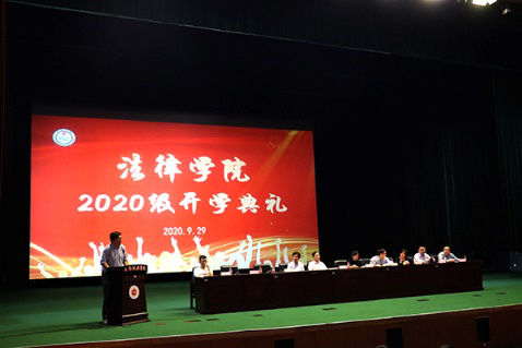 9月29日下午,法律学院在博雅馆举行了2020级新生开学典礼,法律学院党总支书记文立月、院长侯怀霞、副院长杨向东、副院长王康、党总支副书记陆嵬、各教研室主任、专任教师、新生辅导员等参与了开学典礼,陆嵬主持开学典礼。