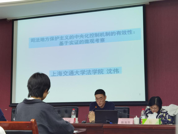 本次讲座主题为“司法地方保护主义的中央化控制机制有效性——以执行涉外仲裁裁决内部报告制度为切入视角”,由我校法律学院陈海萍教授主持。