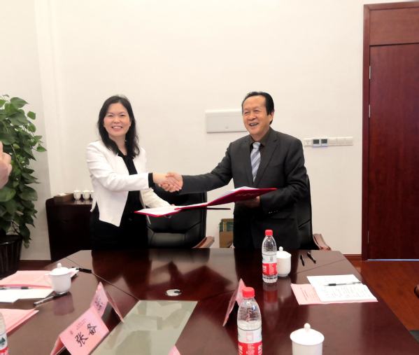 关保英与张丽莉代表研究中心和青浦区法制(监司)委员会签订合作协议。