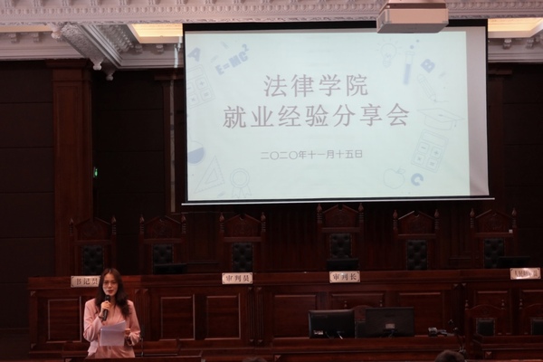 为了帮助同学们明确未来就业方向,加强大家对当前就业形势的了解,11月15日下午,法律学院于B4模拟法庭举办了就业经验分享会。法律学院辅导员彭佩玲以及部分学生出席本次活动。本次分享会邀请了薛紫㵟、甘中飏、冉玉莹、曾静、陈子豪、袁小冬六位优秀毕业学子向大家介绍求职、就业的成功经验。分享会由法律学院研究生团总支创新创业部竺心砚主持。