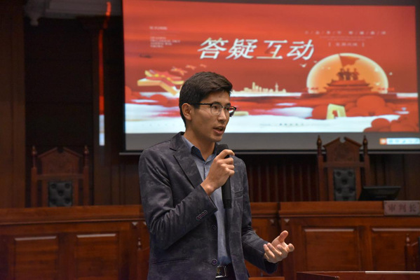 曲永超,曾服役于武警广东省总队执勤第二支队,现就读于法律19011班。他提到两年的军旅生涯锤炼了他的品格,改变了他的性格,锻炼了他的本领,更让他感受到集体力量的伟大。他讲解了当下国家对入伍大学生的种种优惠政策以及退伍后的种种安置措施,鼓励大家放下顾虑,携笔从戎。