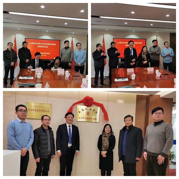 1月8日下午,法律学院院长侯怀霞、党总支副书记陆嵬一行,赴太仓市司法局、律师协会开展校地合作座谈会,座谈期间与太仓市光辉调解法律服务中心、江苏孙剑良律师事务所、江苏娄东律师事务所举行了大学生实践教学基地签约揭牌仪式。江苏省太仓市司法局局长顾潇军、副局长孙建国,太仓市司法局法服科科长、市律师协会秘书长杨银山,太仓市律师协会顾问、江苏孙剑良律师事务所主任孙剑良,太仓市律师协会会长、江苏娄东律师事务所主任马金龙,太仓市光辉调解法律服务中心薛杏生出席了座谈会和签约揭牌仪式。
