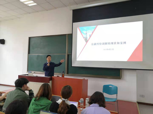 通过车晋刚主任将理论与案例相结合的讲解,同学们对金融行业纠纷如何调解有了基本认识,打破了对民间调解的固有观点。(李雅洁 撰稿、摄影)