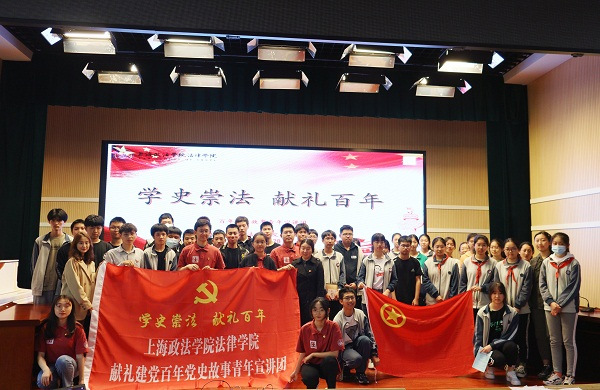 为庆祝中国共产党成立100周年,落实党史学习教育要求,激发青年学子爱党热情。4月28日下午,法律学院辅导员李攀携学院“献礼建党百年党史故事青年宣讲团”一行赴上海市三新学校开展“学史崇法,献礼百年”党史故事宣讲活动。上海市三新学校团委书记董夏力、团委副书记周若霞、团委委员邢丹丹和全体入团积极分子参加活动。活动由法律学院温思怡同学主持。