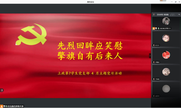 上政第7学生党支部党员闫博韬同志说,党的百年历程告诉我们,坚持党的领导、坚持走中国特色社会主义道路、坚持全心全意为人民服务的重要意义。通过本次党日活动学习,让我更深刻地认识到党的一百年历史中迸发出来的磅礴力量。作为青年党员,要在学习领悟中坚定理想信念,在奋发有为中践行初心使命,以昂扬的精神共同面对未来,努力为国家建设、为社会主义事业发展、为中华民族伟大复兴的中国梦贡献自己的力量。