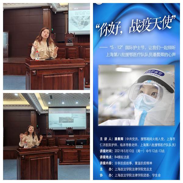 根据学校党史学习教育工作提示,为了开展好“节日里的党史教育”。5月10日中午,经法律学院党总支讨论,围绕庆祝“5·12”国际护士节精心策划了“你好,战疫天使”主题活动,一起倾听了上海第八批援鄂医疗队队员潘晨卿的心声。法律学院党总支书记文立月、党总支副书记陆嵬以及法律学院教师、学生党员、2021年上半年发展对象、入党积极分子出席了本次活动。活动由文立月主持。