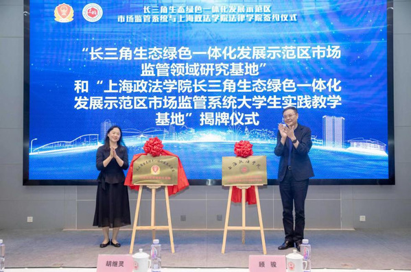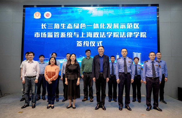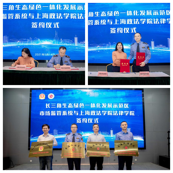 图为法律学院与长三角生态绿色一体化发展示范区市场监管系统签订政产学研用合作备忘录、签订合作协议