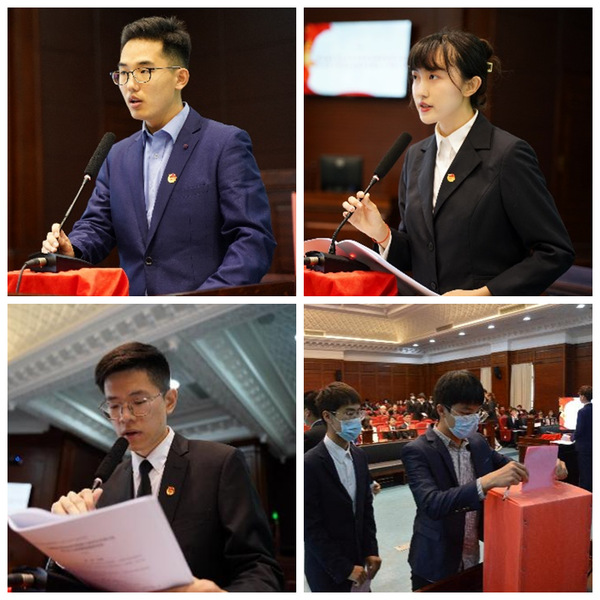 5月16日,法律学院第十次学生代表大会在B4-模拟法庭召开。法律学院党总支副书记陆嵬、团委书记买雨佳、校学生会执行主席诸臻杰、法律学院第九届学生会主席团等参加本次大会,经基层组织民主选举、个人自荐选举产生的正式代表、列席代表等出席了会议。