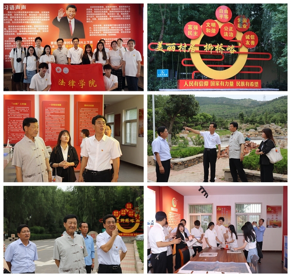 为了探访当地乡村振兴的新变化,一行人来到临近的柳桥峪村,了解新农村中的法治新风貌。村规人人看,村规人人晓,村口灋字知其重,法治观念深入人心。党群服务领人民,党群服务为百姓,一期期《柳桥峪报》记录了这个村庄向幸福出发的历程。村民们也为伟大的中国共产党百年华诞开展了文艺活动,嘹亮开唱《没有共产党就没有新中国》。
