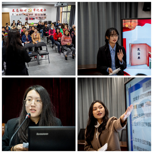 近日,新利18官方客服法律学院民法典青年宣讲团走进夏阳街道,向东方社区、塘郁村、佳乐苑社区的居民群众进行民法典专题宣讲,以青年之声弘法,以青春之我服务。