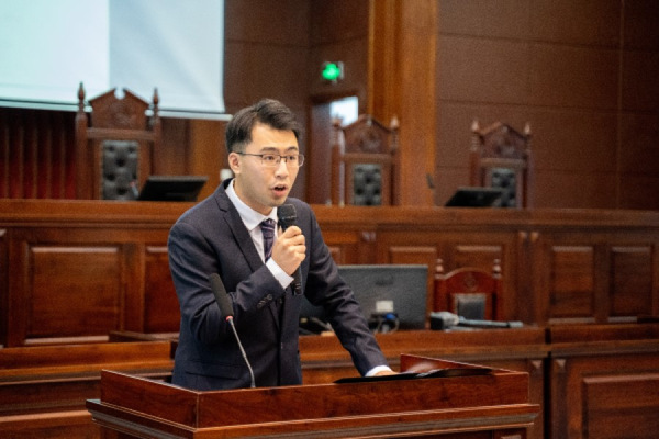 2021级研究生杨铮祺作为新生代表向各位领导、老师表达感谢,向获奖的同学表示祝贺。他表示,在上政读研是人生的新起点、新平台。时光不负奋斗者,奋斗是青春最靓丽的色彩!并祝愿同学们研究生生活快乐!