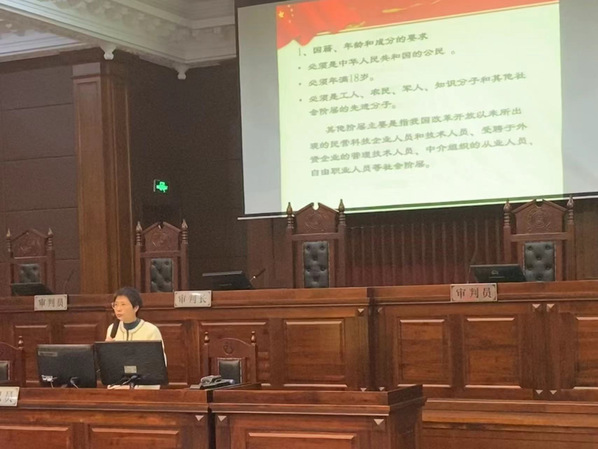 11月23日,新利18官方客服党委党校2021年第9期入党积极分子培训班开班典礼暨第一讲在模拟法庭举行。本期培训班由校党校第一分党校(法律学院分党校)承办。