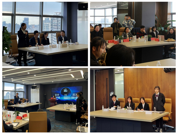 随后,两支代表队以“自媒体时代让我们离真相更近还是更远”为辩题展开激烈辩论。据悉,本次辩论赛开创专职律师和法科生同台辩论的新模式,双方辩手慷慨陈词、旁征博引、随机应变,紧紧围绕主题展开唇枪舌战,现场不断碰撞出思想的火花。比赛结束后,各位评委应邀进行精彩点评。范晓峰律师、沈旻律师对各位辩手的专业知识、精彩表达、逻辑思维和团队合作予以充分肯定,并对青年律师代表队的进步表示欣慰。江晨老师从破题立论、材料、逻辑、表达和应变五个方面,对两队的表现进行全面点评,并提出自己对于辩题的思考,强调大家通过参与辩论,培养思辨能力。陆嵬书记分享自己的辩论之路,并希望大家注重充实论据内容,让辩论更加生动。陆老师以诙谐的语言逐一肯定大家精彩的思维和反应能力,并建议辩手增加名人典故的引用,尤其是文言文古诗词的借用、化用,以感受中华文化之美。