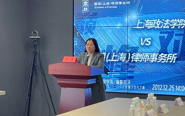 活动伊始,高朋(上海)律师事务所负责人谢向阳和法律学院院长侯怀霞分别致辞,祝贺双方首场辩论赛顺利开辩,表达了合作共建的美好愿景。谢向阳对各位师生的到来表示热烈欢迎,并向学院对本次活动的大力支持表达衷心谢意。谢律师指出,辩论古已有之,“辩”与“论”分别具有深刻含义;“辩”与“论”是古代中国知识分子交流、学习的重要方式,希望选手们赛出水平、赛出风采、赛出友谊,也祝愿本次活动开启高朋(上海)律师事务所与学院合作的新篇章。侯怀霞认为本次活动是与高朋(上海)律师事务所开展全面深入合作的一个良好契机,对双方合作走向更好阶段充满信心与期待。她表示,此次开创的辩论赛模式要常态进行,下次比赛在上政举办,并欢迎高朋(上海)律师事务所的朋友们到野马浜做客。